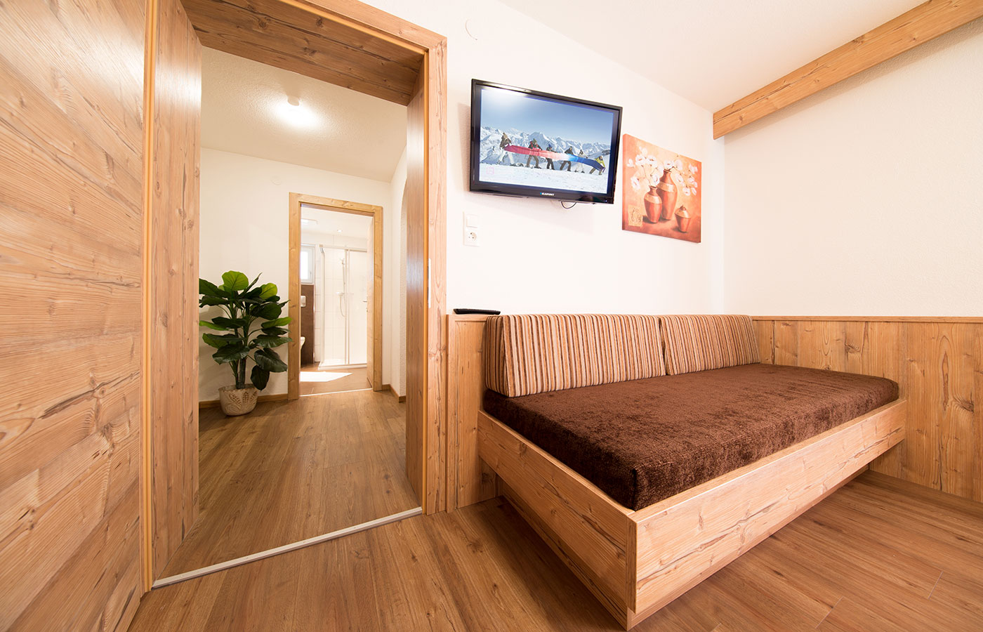 Das Appartement verfügt über zwei getrennte Schlafzimmer – ein Dreibettzimmer und ein Einzelzimmer – sowie ein Badezimmer mit Dusche, WC und einen Föhn. Die Wohnküche ist vollständig ausgestattet mit 4‑Plattenherd, Backrohr, Geschirrspüler, Kühlschrank, Kaffeemaschine, Wasserkocher, Mikrowelle und Toaster. Für Unterhaltung sorgt Kabel-TV, zudem stehen Safe und kostenloses Internet zur Verfügung. Entspannen Sie auf dem Balkon und genießen Sie Ihren Aufenthalt.