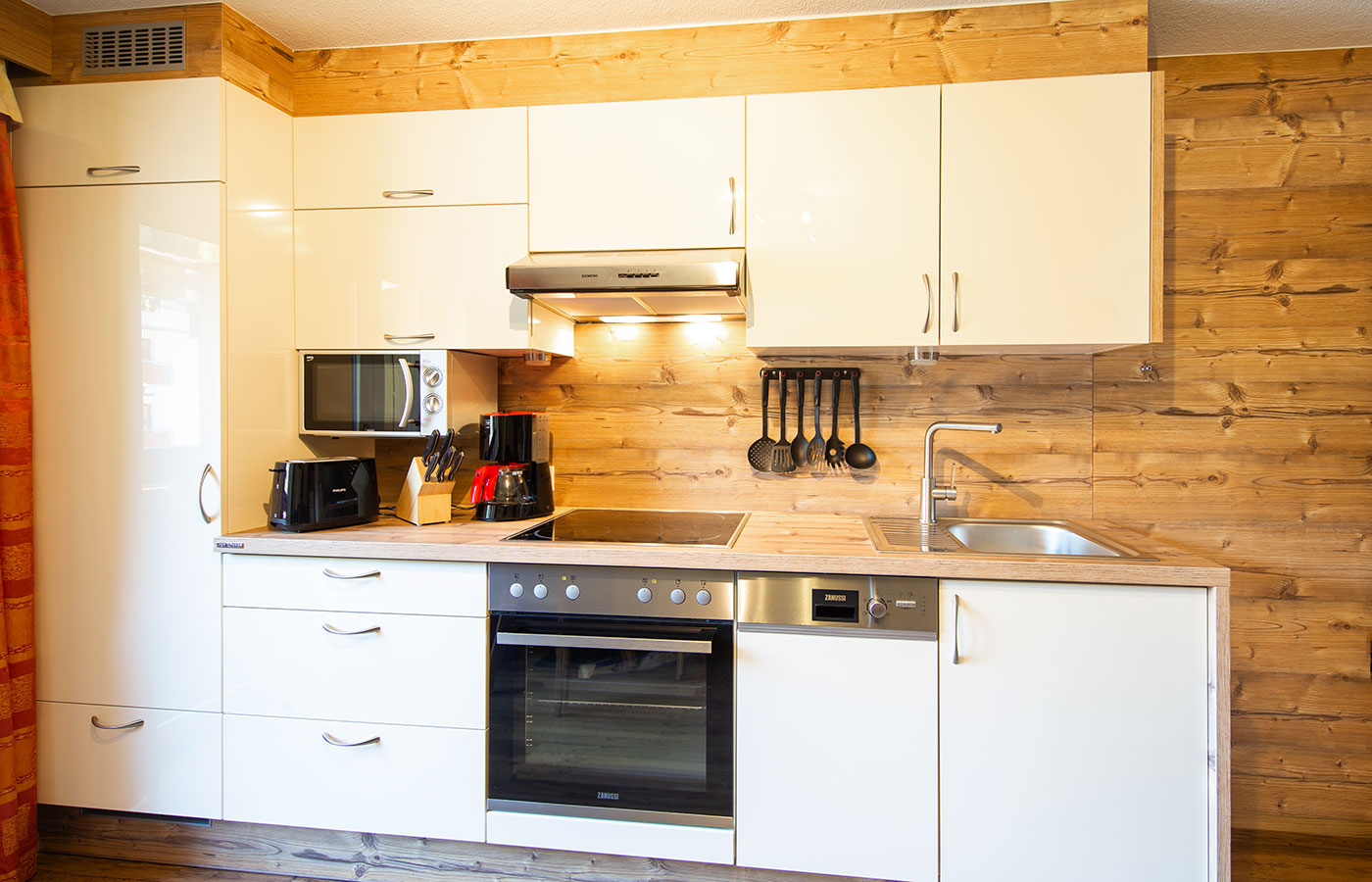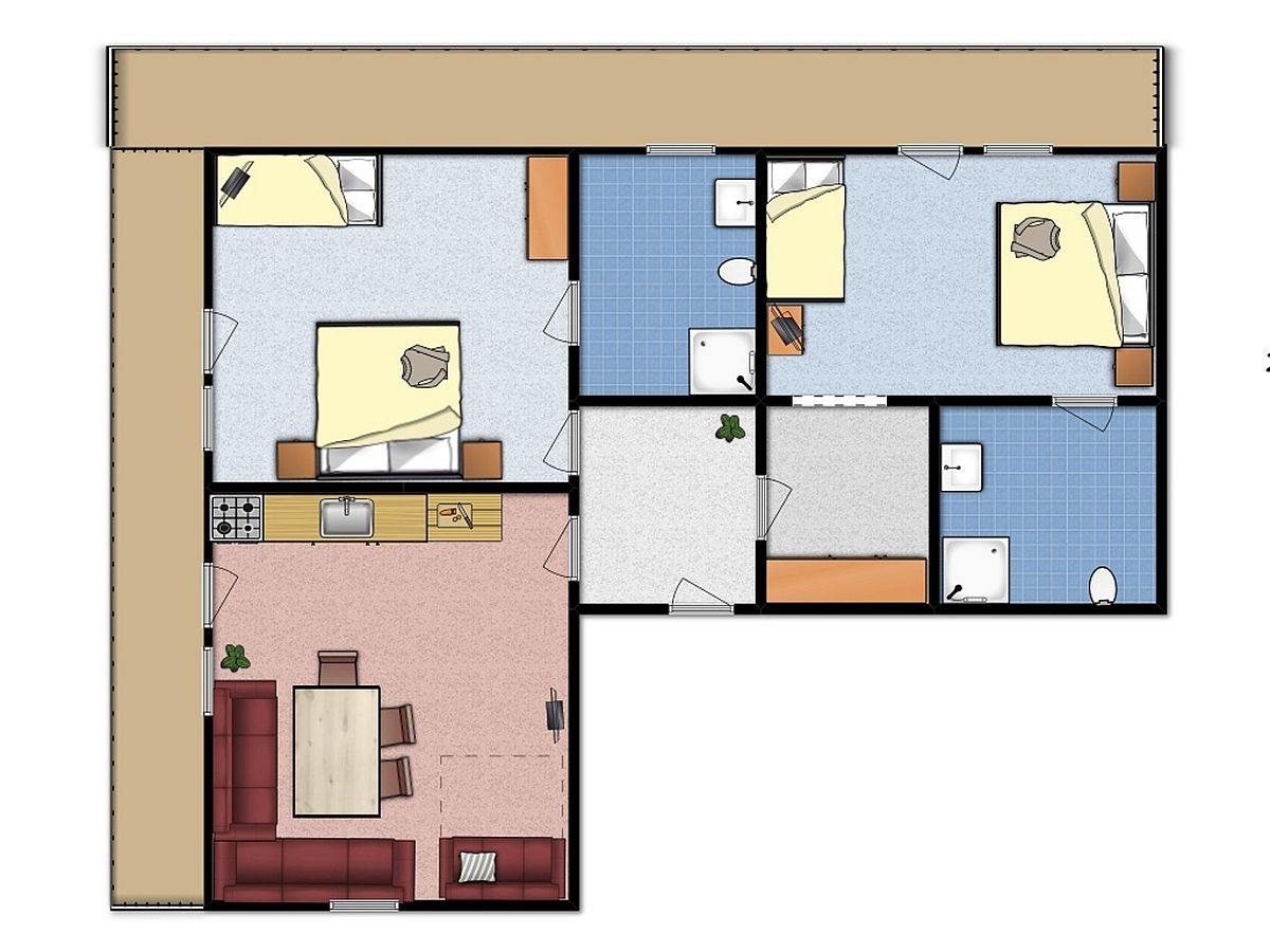 Das Appartement verfügt über zwei getrennte Schlafzimmer, jeweils mit einem Doppelbett und einem Einzelbett, sowie zwei Badezimmer mit Dusche, WC und einen Föhn. Die Wohnküche ist vollständig ausgestattet mit 4‑Plattenherd, Backrohr, Geschirrspüler, Kühlschrank, Kaffeemaschine, Wasserkocher, Mikrowelle und Toaster. Für Unterhaltung sorgt Kabel-TV, zudem stehen Safe und kostenloses Internet zur Verfügung. Genießen Sie entspannte Stunden auf dem Balkon.
