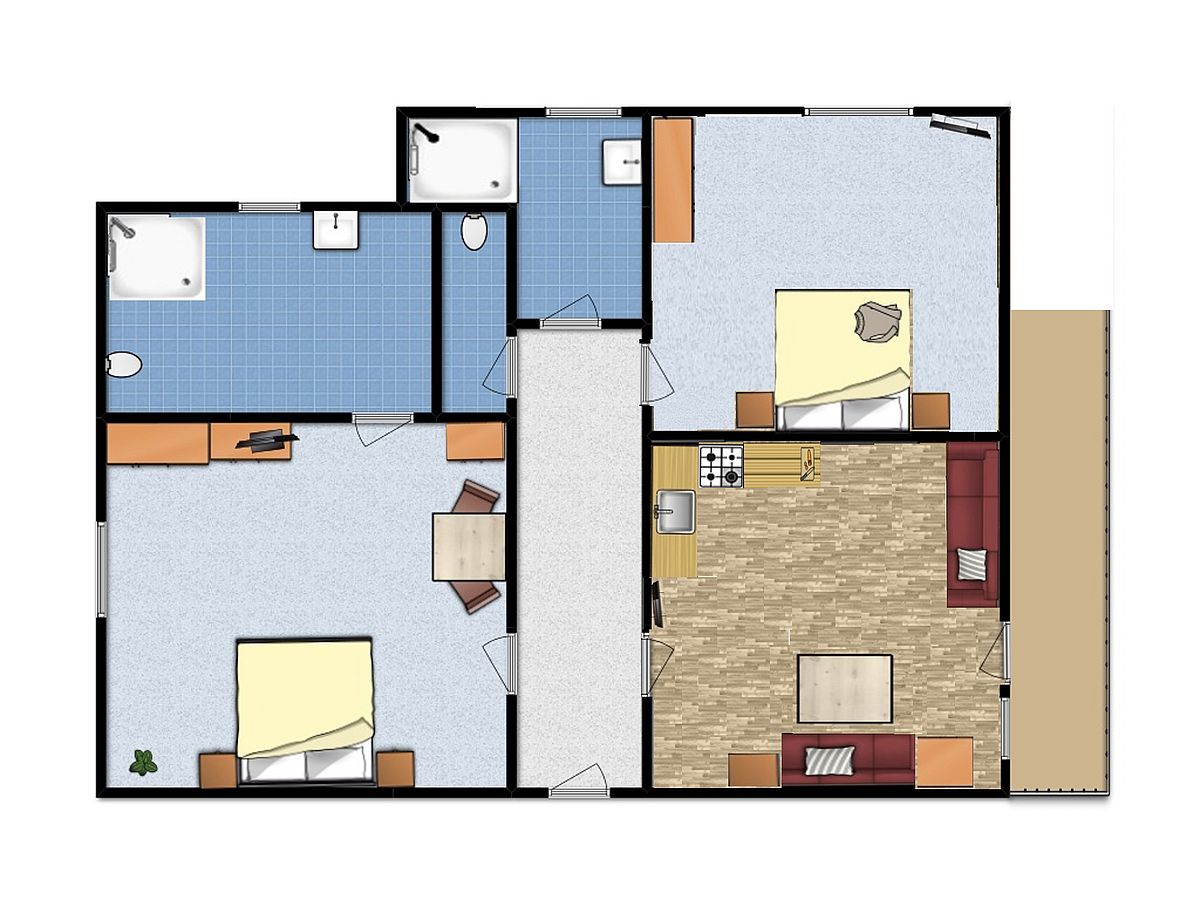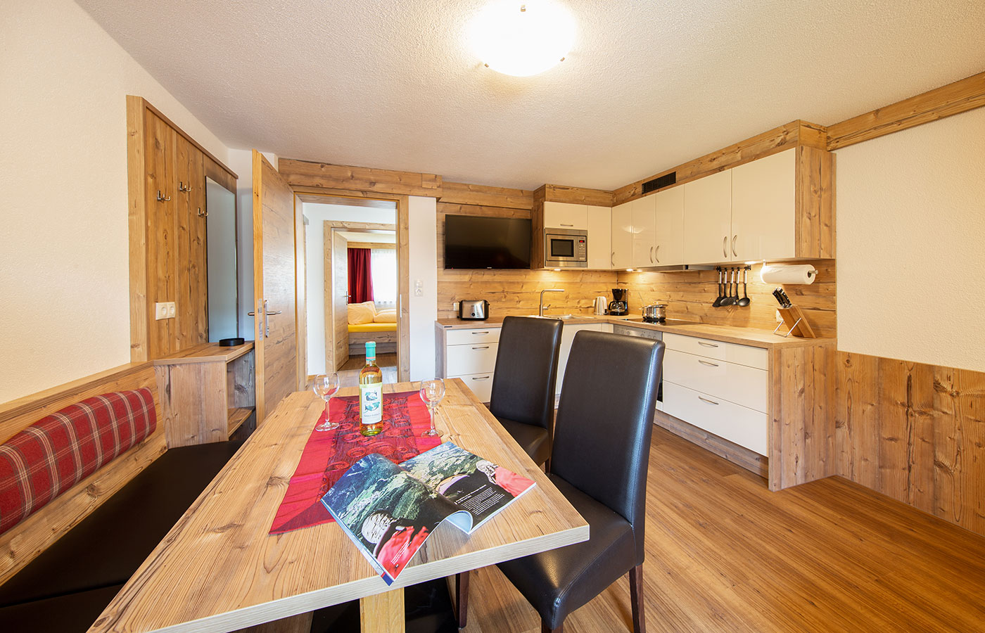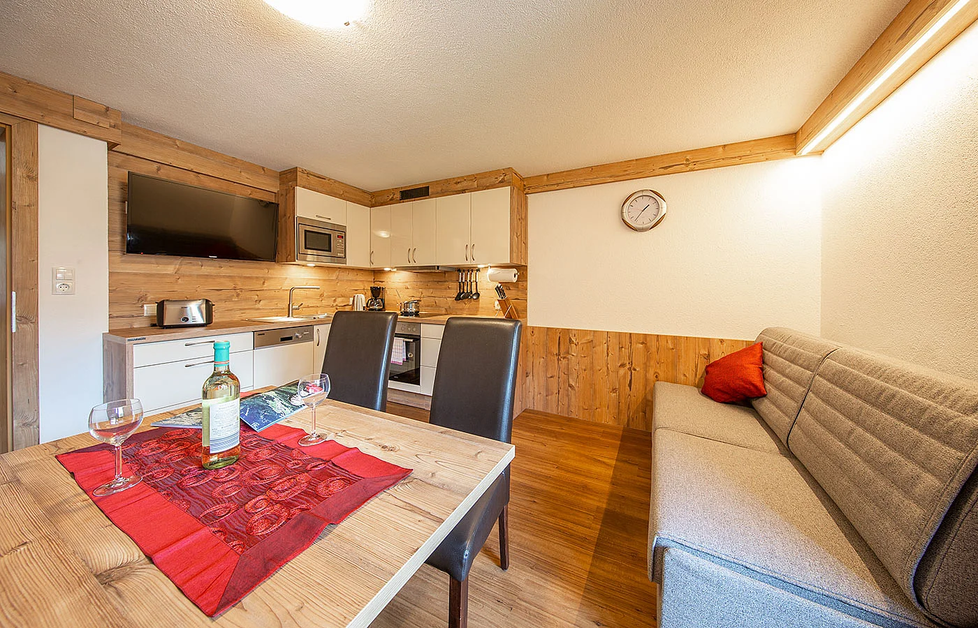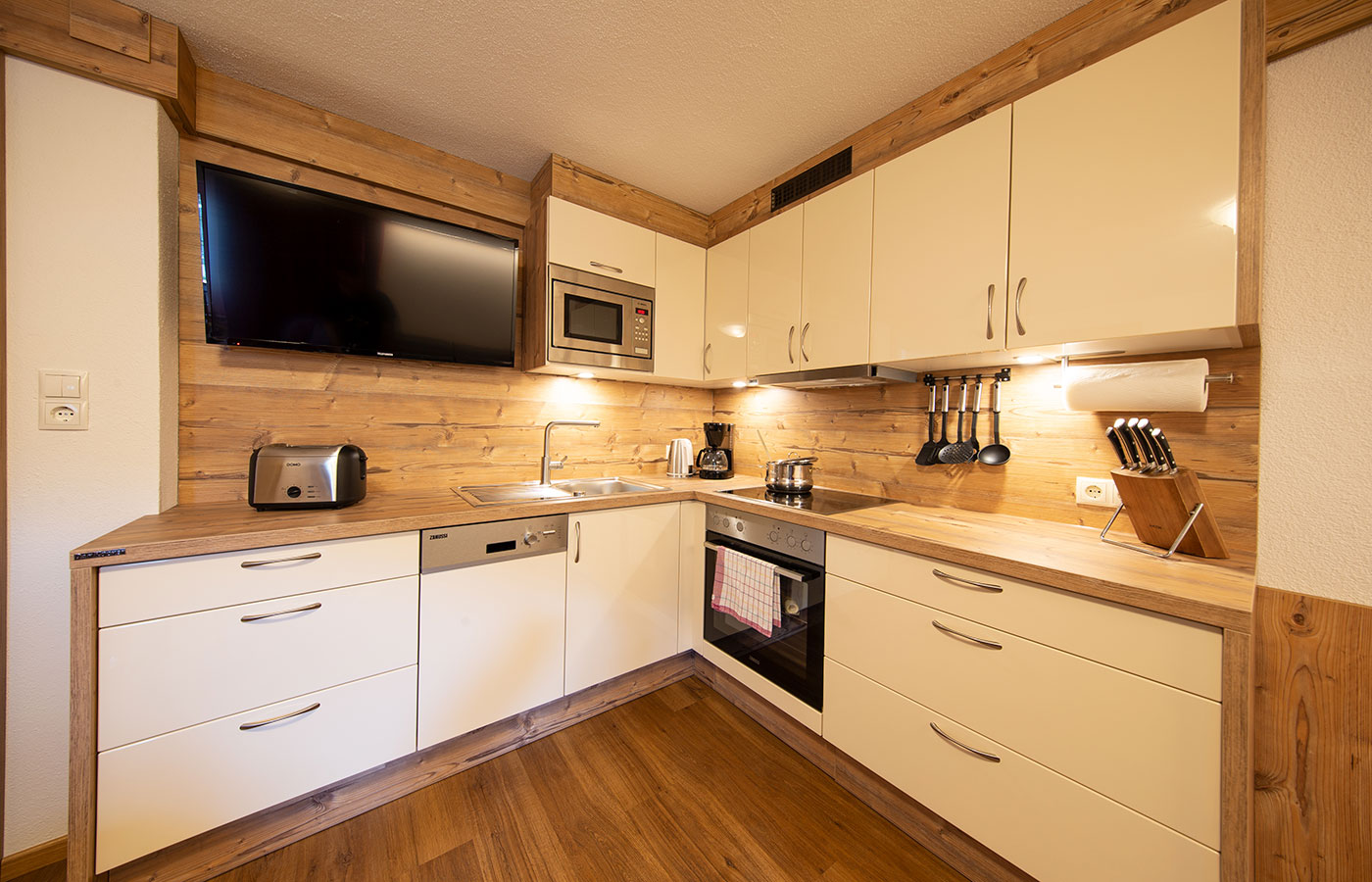Das Appartement verfügt über zwei getrennte Schlafzimmer, jeweils für zwei Personen, sowie zwei Badezimmer mit Dusche, WC und einen Föhn. Die Wohnküche ist vollständig ausgestattet mit 4‑Plattenherd, Backrohr, Geschirrspüler, Kühlschrank, Kaffeemaschine, Wasserkocher, Mikrowelle, Toaster und einem Schlafsofa. Für Unterhaltung sorgt Kabel-TV, zudem stehen Safe und kostenloses Internet zur Verfügung. Entspannen Sie auf dem Balkon und genießen Sie Ihren Aufenthalt.
